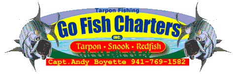 Go Fish Charters offers Tarpon fishing snook fishing, fishing charters from Boca Grande, Englewood, Ft Myers, Punta Gorda, Pine Island, Port Charlotte, Sanibel, Captiva, and Charlotte Harbor. Half day fishing charter full day fishing charter and night time fishing charters. Tarpon Fishing from mid April-August, Snook fishing year round. There are many other fishing charters such as redfish sea trout cobia and a host of other fishing in our area.